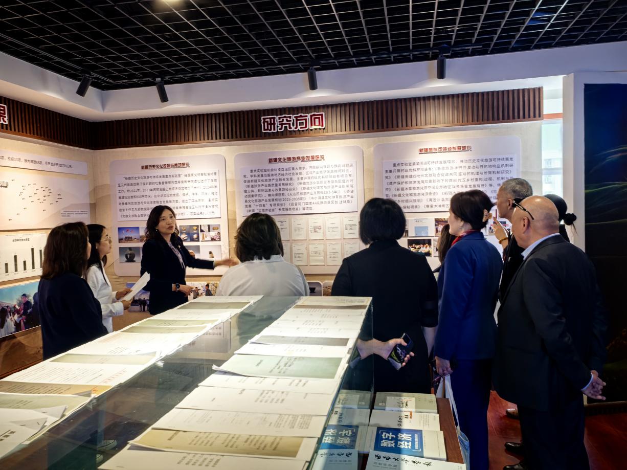 会前,新疆大学旅游学院副书记、院长谢霞邀请访华团参观了《新疆历史文化旅游可持续发展重点实验室》展陈室,并介绍了学院的发展历程、研究方向、研究成果、人才培养及交流合作等情况。